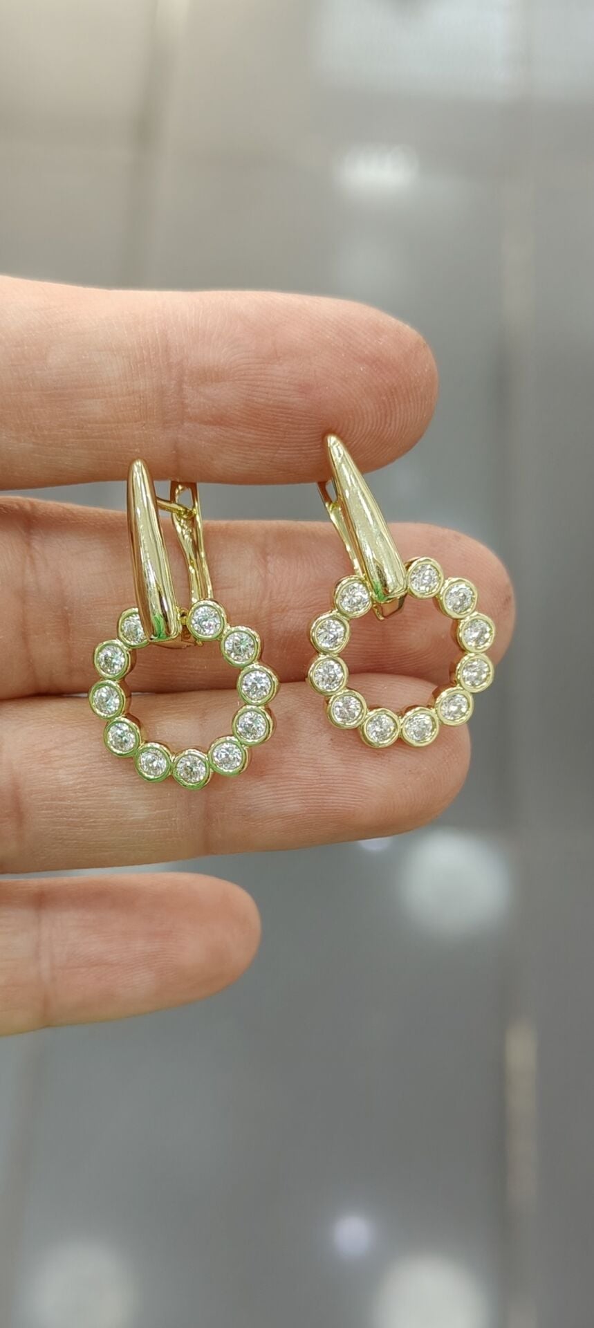 Taşlı Halka Sarkık Küpe